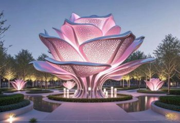 • 綻光粉蕊:不銹鋼花之景觀雕塑